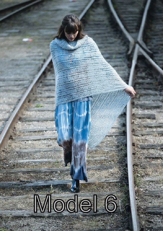 Model 6 Poncho strikket i Alpakka Silke og Silk Mohair (alternativ Mini Alpakka, Mandarin Petit, Mini Duet) str. One Size, garnforbrug, Alpakka Silke fv. 7521 Lys gråblå 200 gram og Silk Mohair fv. 7521 Støvet lyseblå 150 gram